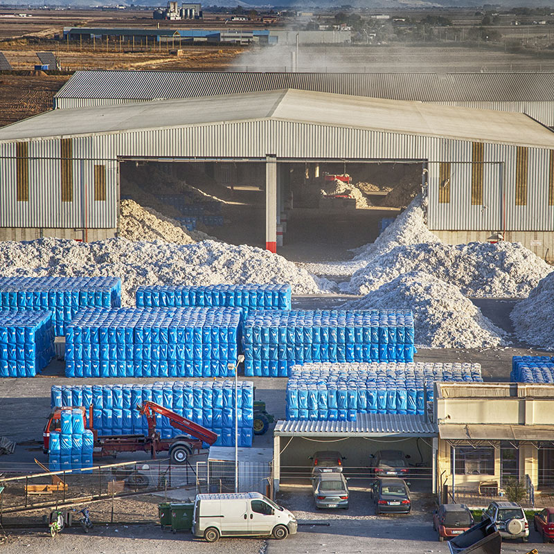 Glafiki, LarissaThe Larissa facilities are located in the area of Glafki, Larissa and are one of the company’s largest investments that was implemented in 2000. An area of 25 acres houses one of the most modern cotton mills, which includes 5 state-of-the-art ginning machines, as well as storage facilities for products produced, covering a total area of 20,000 sq.m. The production capacity amounts to 1,000 parcels of ginned cotton per day.